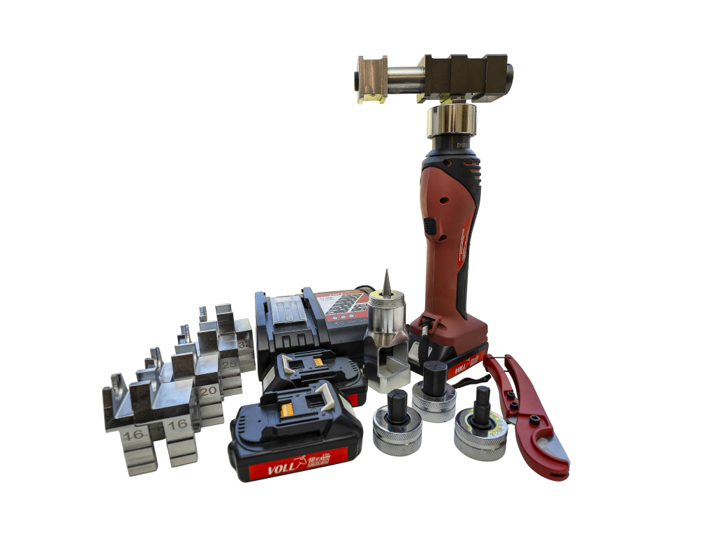 Аккумуляторный гидравлический аксиальный пресс VOLL V-PexPress EH32-2AKKU (с подсветкой Led), с функцией труборасширителя предназначен для запрессовывания пресс-втулками прессового кольца на фитинг трубы и расширения концов Pex и многослойных композитных труб Ø 16, 20, 25, 32 мм систем Rehau, Stout, Ahlsell, Sanext, Pro Aqua, Pipe Life, Stroj-AVF, Jentro. В комплекте две аккумуляторные батареи, три расширительные головки, ножницы для резки пластиковых труб, запрессовочные тиски, расширительный экспандер.